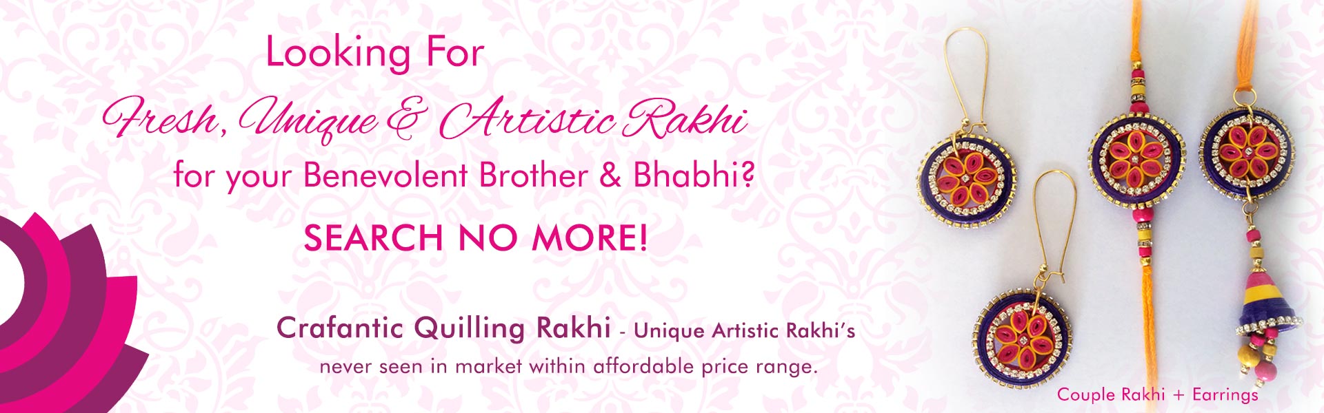 A. Quilling is an art of using paper strips of various sizes and quality that are rolled, looped, curled, twisted to create shapes. We at Crafantic created the fusion of quilling and metal artefacts plus trade secret water resistant coating layers to create fresh, unique and artistic rakhi within affordable price range.